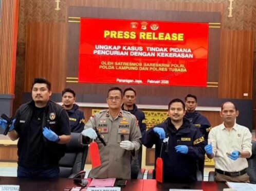 Hukum & KriminalLAMPUNG, ifakta.co – Tim Satresmob Bareskrim Polri bersama Polda Lampung dan Polres Tulang Bawang Barat berhasil mengungkap kasus pencurian dengan kekerasan (curas) menggunakan senjata api yang terjadi di Kabupaten Tulang Bawang Barat, Lampung, Kamis (20/2/2026). Peristiwa perampokan itu terjadi pada Senin, 19 Januari 2026 sekitar pukul 09.00 WIB di Jalan Sudirman, Tiyuh Daya Asri, Kecamatan […]