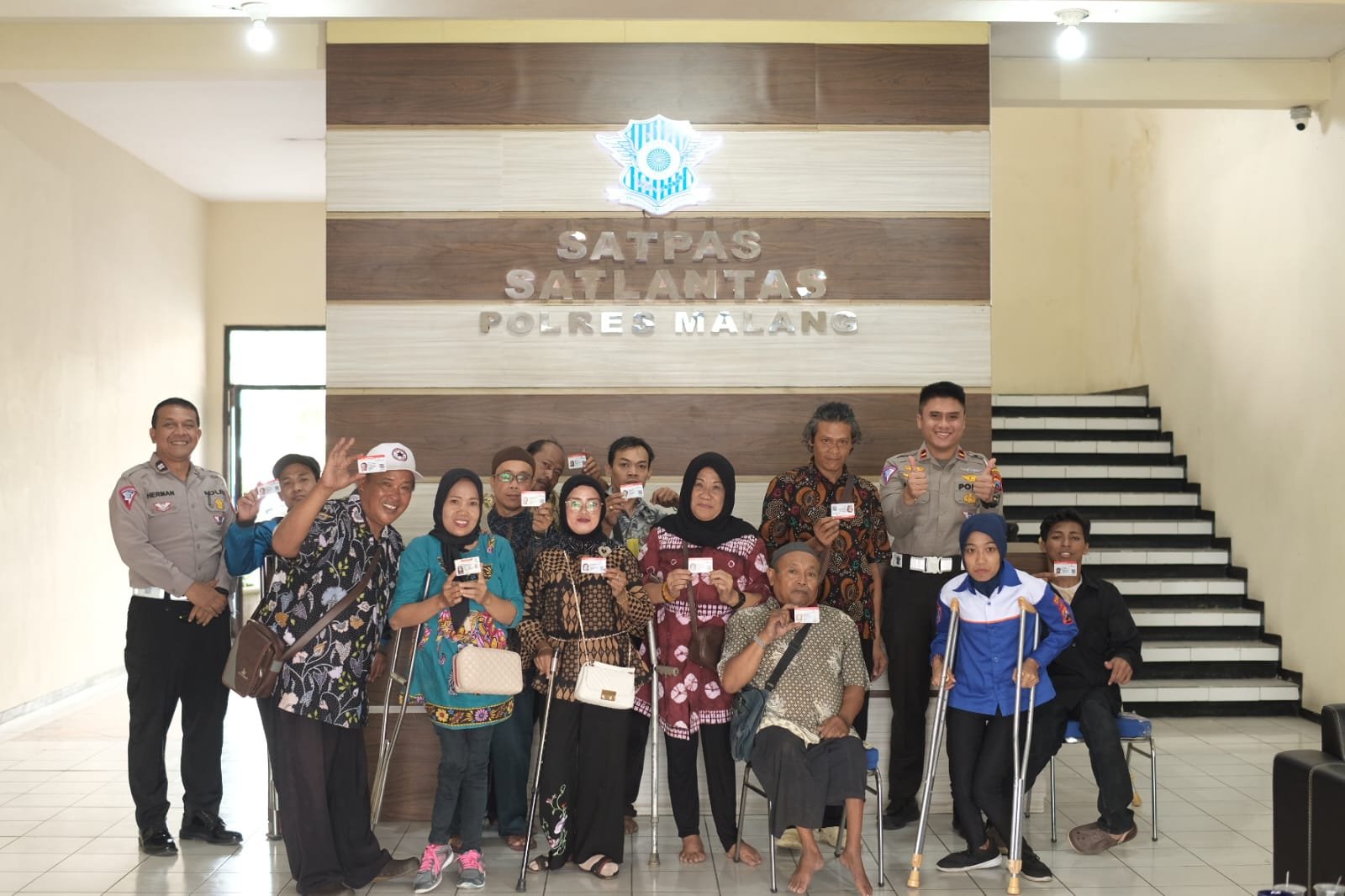 Kali ini, Satuan Polisi Lalu lintas (Satlantas) Polres Malang memberikan bantuan surat izin mengemudi (SIM) D gratis bagi 11 orang penyandang difabel di wilayah Kabupaten Malang.