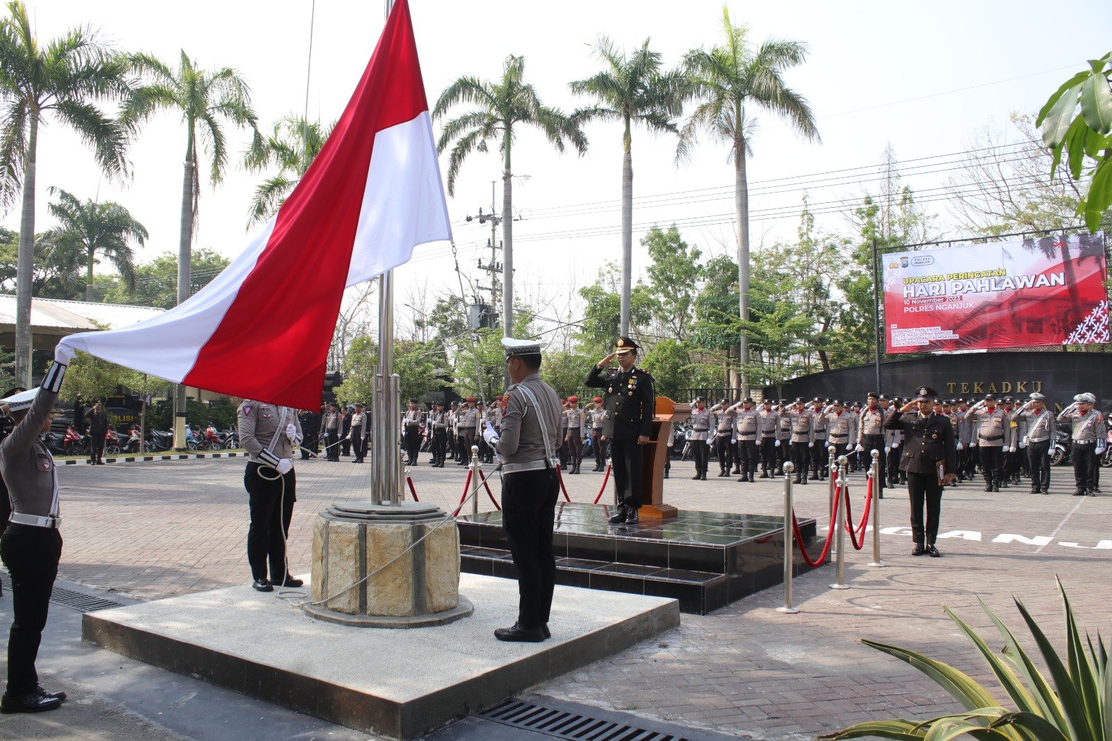 Peringatan hari Pahlawan tahun 2023 mengangkat tema “Semangat Pahlawan Untuk Masa Depan Bangsa Dalam Memerangi Kemiskinan Dan Kebodohan” diikuti seluruh anggota Polres Nganjuk beserta perwakilan anggota polsek jajaran.