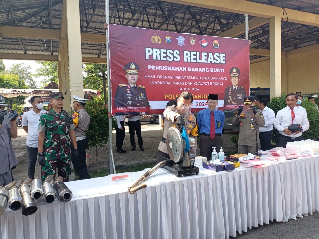 Kapolres juga memerinci total barang bukti dari masing-masing kasus yang diamankan yakni berupa uang tunai Rp2.351.000,-, 20 buah handphone, kendaraan roda dua 3 unit, sabu-sabu sebanyak 15,33 gram, pil extacy 26.975 butir, serbuk bahan peledak (handak) 26 ons dan miras ilegal sebanyak 108,5 liter.
