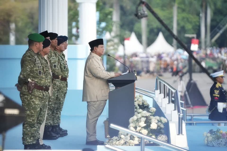 Dalam amanatnya, Presiden Prabowo Subianto menyampaikan rasa bangga dan penghargaan yang tinggi kepada seluruh prajurit TNI di manapun berada, atas dedikasi, disiplin, dan loyalitas yang telah ditunjukkan selama delapan dekade pengabdian.