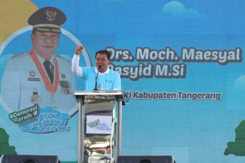 TANGERANG, ifakta.co –Bupati Tangerang Moch. Maesyal Rasyid bersama Gubernur Banten Andra Soni serta Kementerian Lingkungan Hidup dan Kehutanan (KLHK) RI mengampanyekan gerakan “Ayo Tangerang Langit Biru, Generasi Bersih”. Acara tersebut digelar di Lapangan Mini Soccer Cluster Abira Suvarna Sutera, Kec. Sindang Jaya, Kabupaten Tangerang, Kamis (9/10/25).