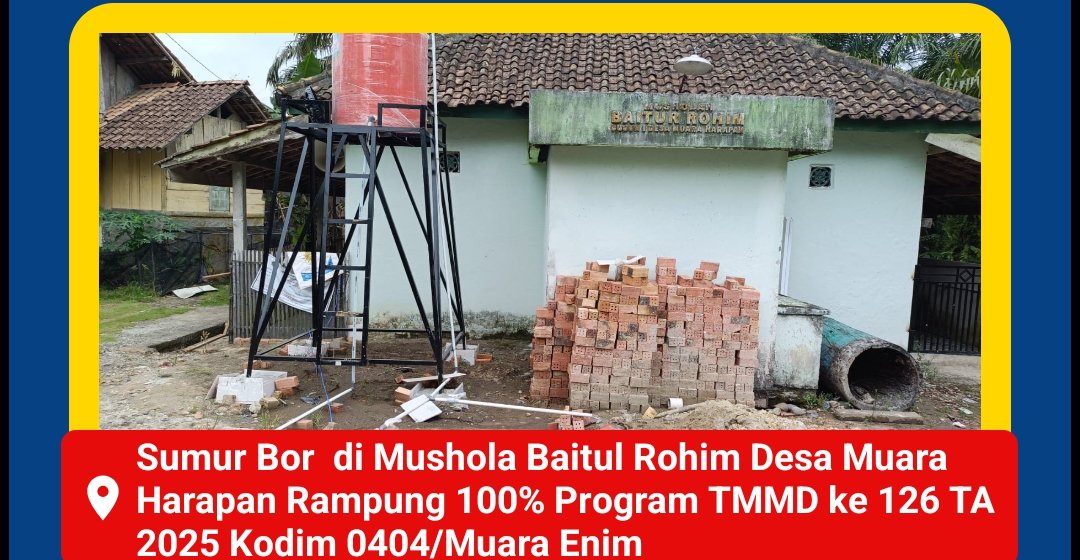 MUARA ENIM , Ifakta.co – Program TNI Manunggal Membangun Desa (TMMD) ke-126 TA 2025 Kodim 0404/Muara Enim membawa kebahagiaan bagi warga Dusun 1, Desa Muara Harapan Kecamatan Muara Enim Kabupaten Muara Enim, Program ini berhasil membangun sumur bor di Mushola Baitul Rohim yang kini telah dimanfaatkan oleh 14 Kepala Keluarga (KK).