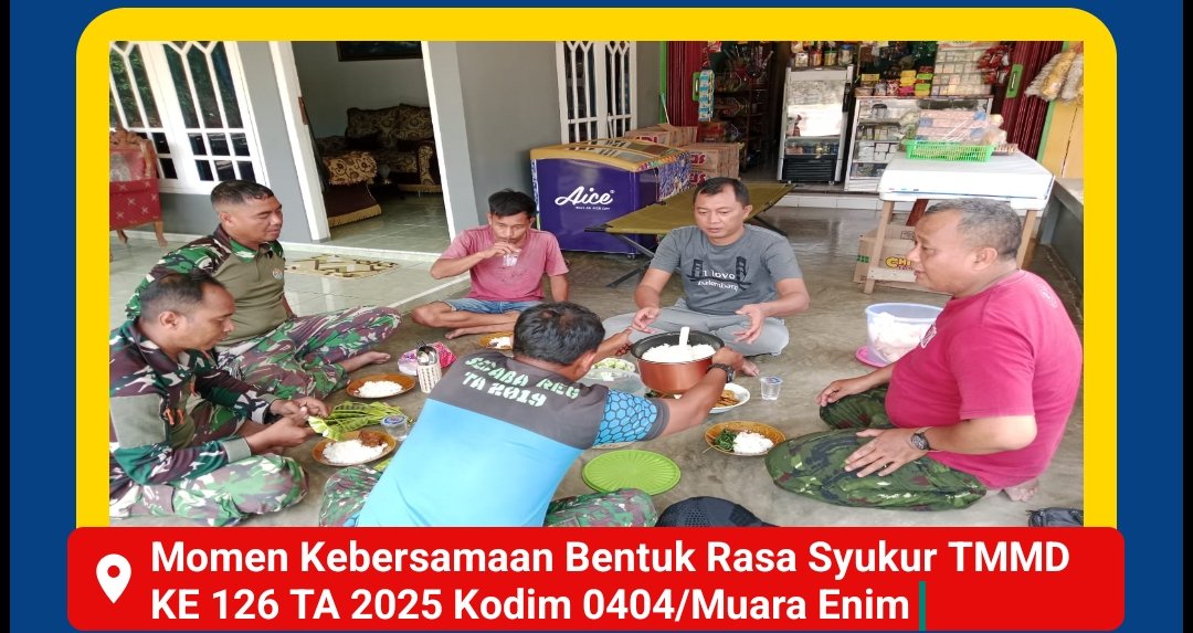 MUARA ENIM , Ifakata.co – Semangat gotong royong dan kebersamaan mewarnai Desa Harapan Jaya, Kecamatan Muara Enim, saat jajaran TNI dari Kodim 0404/Muara Enim bersama warga setempat menggelar acara makan bersama di rumah Bapak Selamet pada Minggu (12/10/2025).