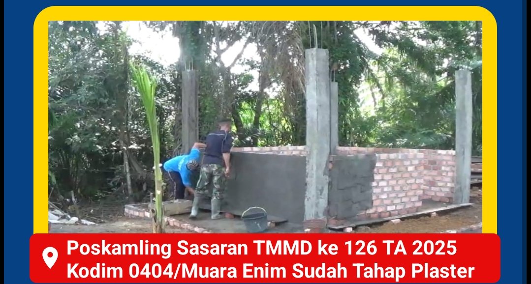 MUARA ENIM , Ifakta.co – Program TMMD ke-126 TA 2025 Kodim 0404/Muara Enim terus menunjukkan komitmennya dalam menciptakan lingkungan yang aman dan kondusif bagi masyarakat. Salah satu wujudnya adalah pembangunan Pos Kamling yang representatif di tiga desa sekaligus: Harapan Jaya, Muara Harapan, dan Saka Jaya, Kecamatan Muara Enim. Saat ini, pembangunan Pos Kamling telah mencapai tahap plester, menandakan semakin dekatnya fasilitas ini untuk segera dimanfaatkan oleh warga.