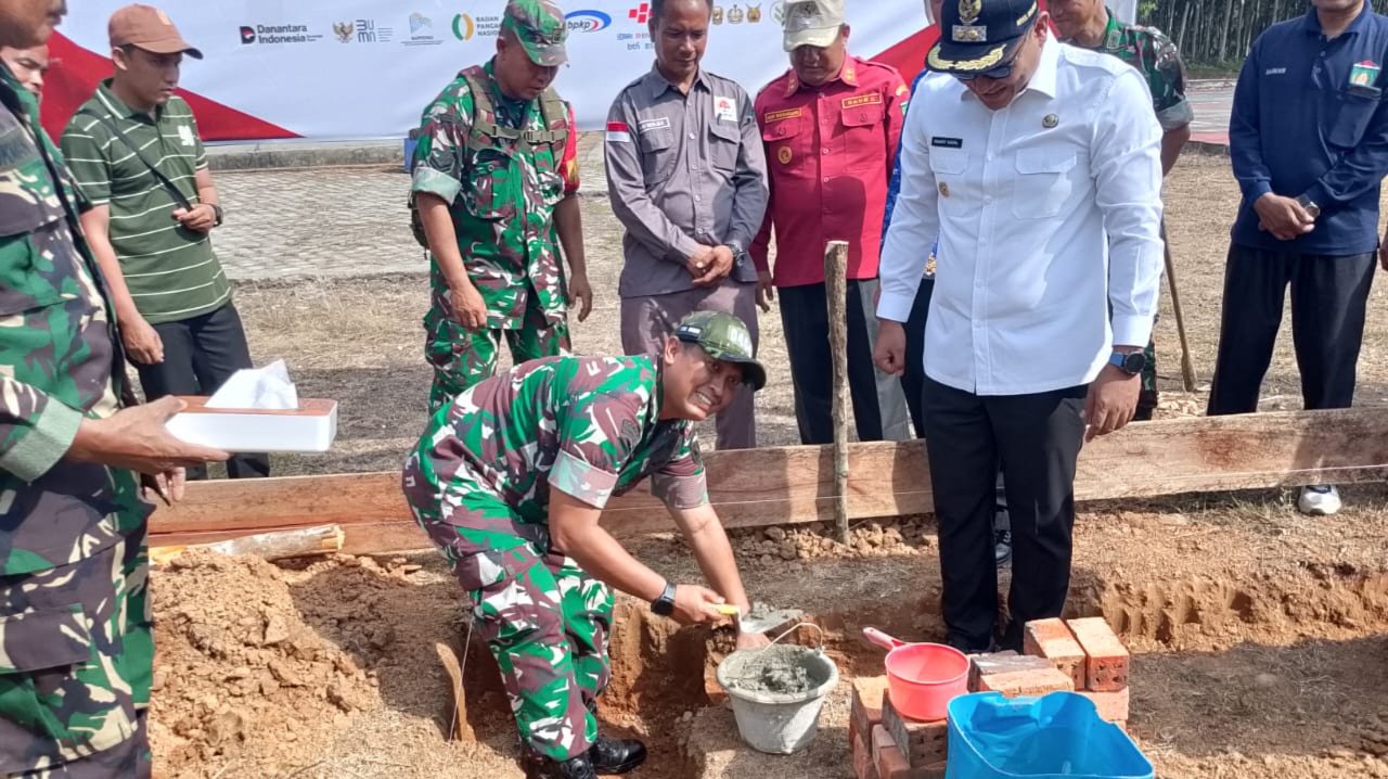 Dandim 0404/Muara Enim, Wakil Walikota Prabumulih, dan Danramil 404-02/Prabumulih secara simbolis melakukan peletakan batu pertama sebagai tanda dimulainya pembangunan.