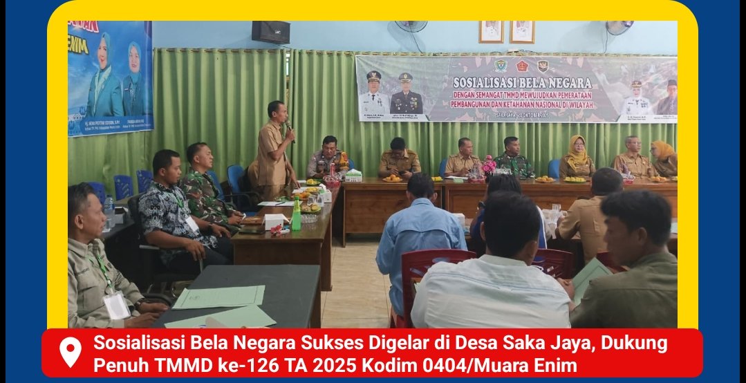 MUARA ENIM, Ifakta.co – Dalam upaya menyukseskan program TNI Manunggal Membangun Desa (TMMD) ke-126, Desa Saka Jaya, Kecamatan Muara Enim, menjadi lokasi kegiatan sosialisasi Bela Negara. Acara yang berlangsung pada Senin, 20 Oktober 2025, ini dihadiri oleh berbagai elemen masyarakat dan pejabat terkait.