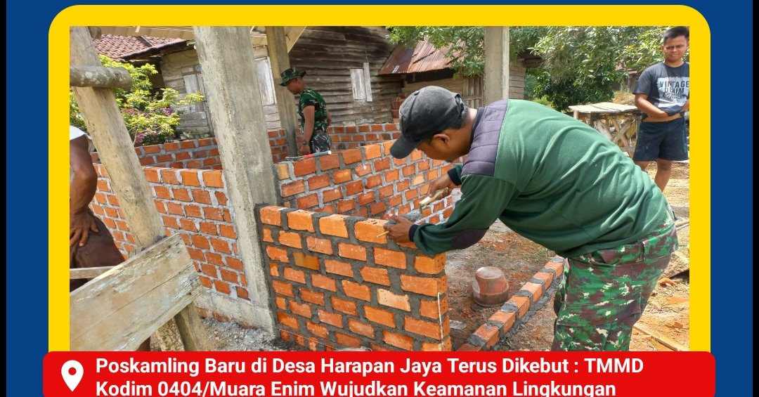 Program TNI Manunggal Membangun Desa (TMMD) ke-126 tahun anggaran 2025 yang diinisiasi oleh Kodim 0404/Muara Enim terus menunjukkan progres signifikan, dengan fokus utama pada pembangunan Poskamling yang terletak strategis di Dusun 1 RT 3 Desa Saka Jaya.
