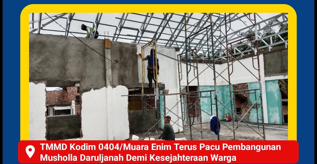MUARA ENIM , Ifakta.co – Program TNI Manunggal Membangun Desa (TMMD) ke-126 TA 2025 yang diinisiasi oleh Kodim 0404/Muara Enim terus memacu pembangunan Musholla Daruljanah di Desa Harapan Jaya, Kecamatan Muara Enim. Pengebutan pembangunan ini merupakan wujud komitmen TNI dalam meningkatkan kualitas fasilitas ibadah dan kesejahteraan masyarakat di Kabupaten Muara Enim.Senin (27/10/2025).