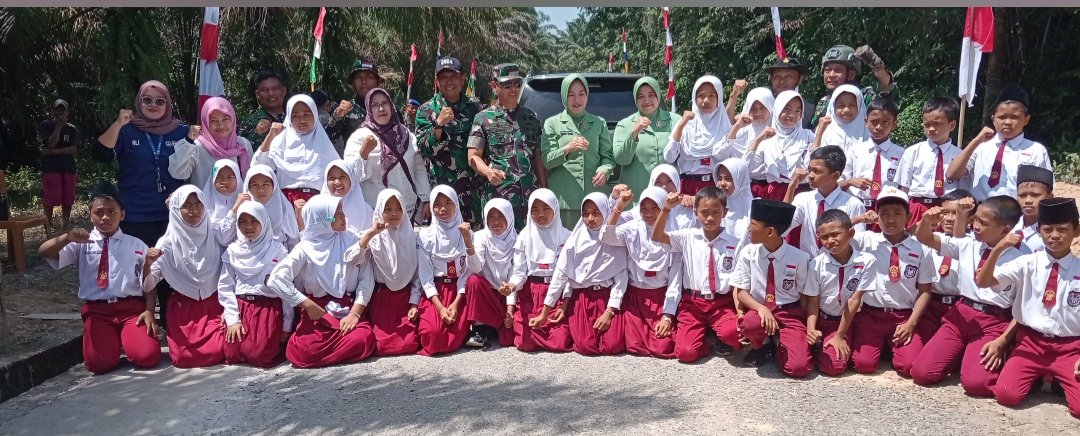 Kedatangan Pangdam juga disambut meriah oleh siswa-siswi SDN 15 Muara Enim, Desa Muara Harapan, yang turut memeriahkan suasana.