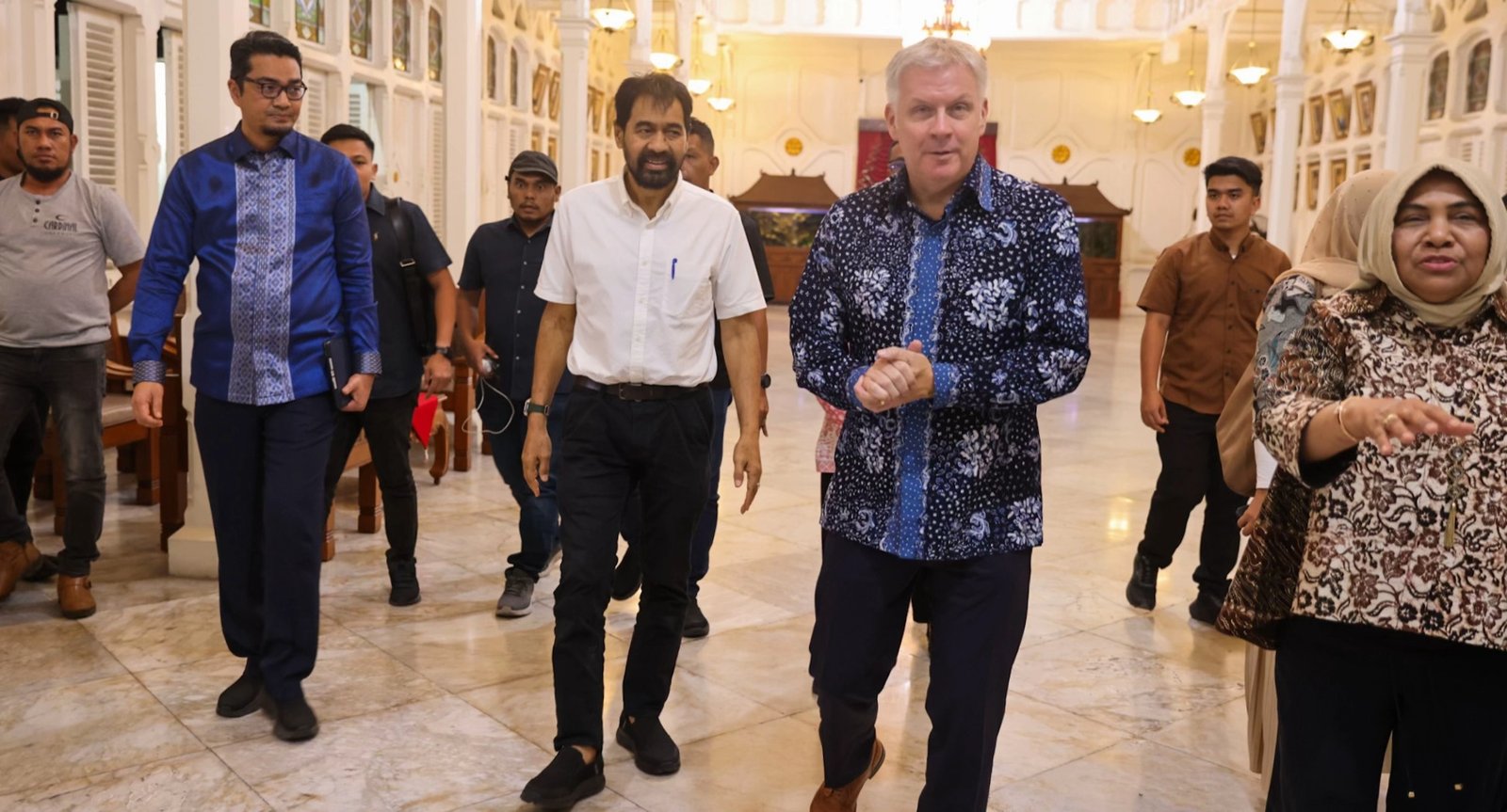 Dialog dilanjutkan dengan jamuan makan malam, disertai peninjauan ke sejumlah ruang heritage di kompleks Meuligoe Gubernur Aceh. Suasana keakraban tampak saat Mualem dan Dubes Dutton saling bertukar salam adat.