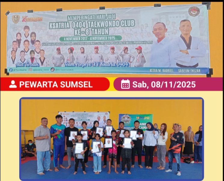 MUARA ENIM , Ifakta.co – Gemuruh semangat dan kebanggaan mewarnai perayaan hari ulang tahun ke-8 Ksatria 0404 Taekwondo Club. Tepat pada 4 November 2025 Genap sudah 8 Tahun Ksatria 0404 Taekwondo Club Berdiri.