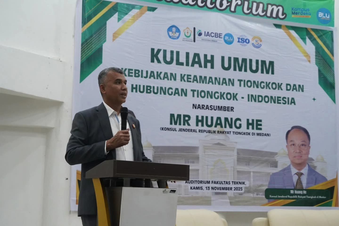 LHOKSEUMAWE, ifakta.co — Universitas Malikussaleh (Unimal) mengadakan kuliah umum yang menghadirkan Konsul Jenderal Republik Rakyat Tiongkok di Medan, Mr. Huang He, sebagai narasumber utama, kamis (13 November 2025).