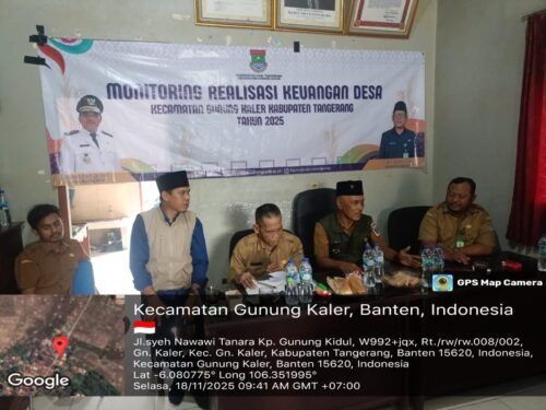 TANGERANG, ifakta.co – Pemerintah Desa Gunung Kaler melaksanakan kegiatan monitoring Realisasi Keuangan Desa Triwulan IV APBDes Tahun 2025 pada Senin, 17 November 2025. Kegiatan ini berlangsung di Kantor Desa Gunung Kaler dan berjalan dengan tertib.