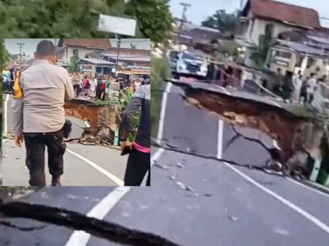 Pihak kepolisian telah memasang garis pembatas dan menutup total area jembatan untuk mencegah warga mendekat. Kondisi di lokasi masih rawan dan berpotensi kembali longsor. (edy)