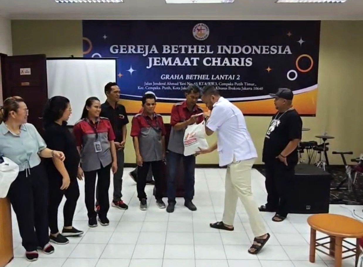 Paket sembako GEKIRA juga diterima oleh Gereja Bethel Indonesia Jemaat Charis di Cempaka Putih Timur, Senin (15/12/2025).
