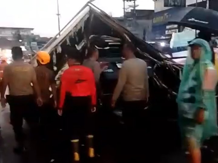 Mobil Toyota Kijang Innova bernomor polisi BG 1395 CI menjadi korban dalam insiden tersebut.