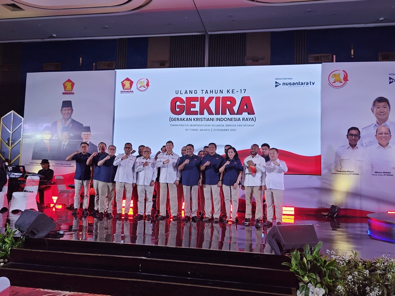 JAKARTA, Ifakta.co — Ketua Dewan Pembina Partai Gerindra, Hasyim Djojohadikusumo, menghadiri perayaan ulang tahun Gerakan Kristiani Indonesia Raya (Gekira) yang digelar pada Minggu, 21 Desember 2025. Kehadiran Hasyim menjadi bentuk dukungan Partai Gerindra terhadap peran Gekira dalam memperkuat persatuan dan semangat kebangsaan.