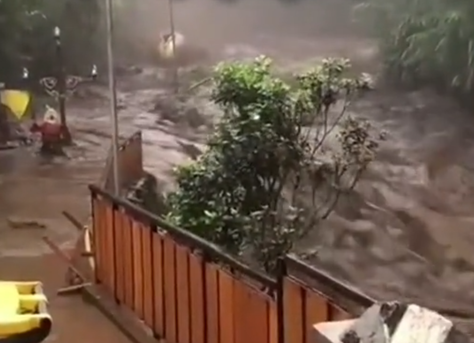 “Saya lagi di dekat kolam, tiba-tiba air cokelat gede datang dari atas. Cepat banget. Orang-orang langsung lari semua,” kata Rizky (32), pengunjung asal Jakarta.