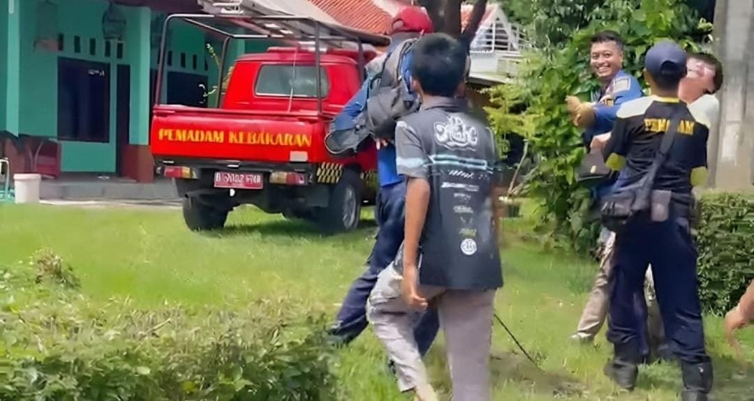 BEKASI, ifakta.co — Aksi humanis ditunjukkan petugas pemadam kebakaran (Damkar) di wilayah Harapan Jaya, Tambun, Kabupaten Bekasi, Jawa Barat.