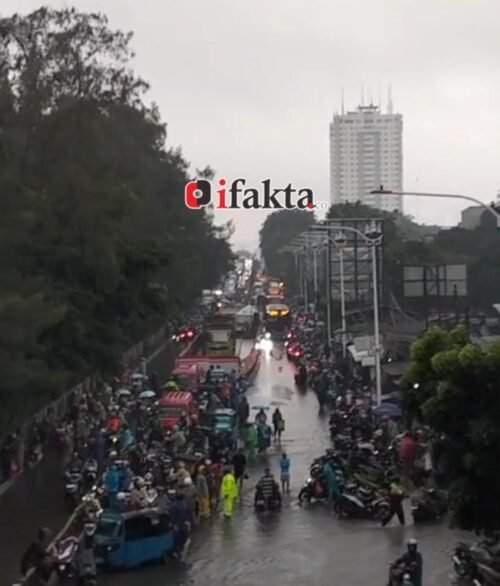 Pantauan ifakta.co di lapangan menunjukkan, banjir terpantau cukup tinggi di ruas jalan dari arah Emporium Pluit Mall menuju Muara Karang. Kondisi serupa juga terjadi dari arah sebaliknya, membuat kendaraan roda dua maupun roda empat kesulitan melintas.