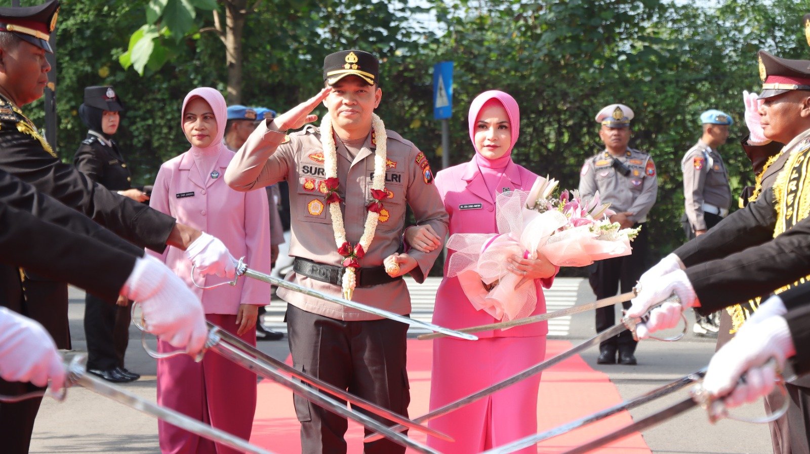 Setibanya di Markas Komando (Mako) Polres Nganjuk, AKBP Suria Miftah Irawan disambut langsung oleh Wakapolres Nganjuk, para Pejabat Utama (PJU), Kapolsek jajaran, perwira, anggota, serta ASN Polres Nganjuk. Prosesi berlangsung khidmat dan sarat makna.