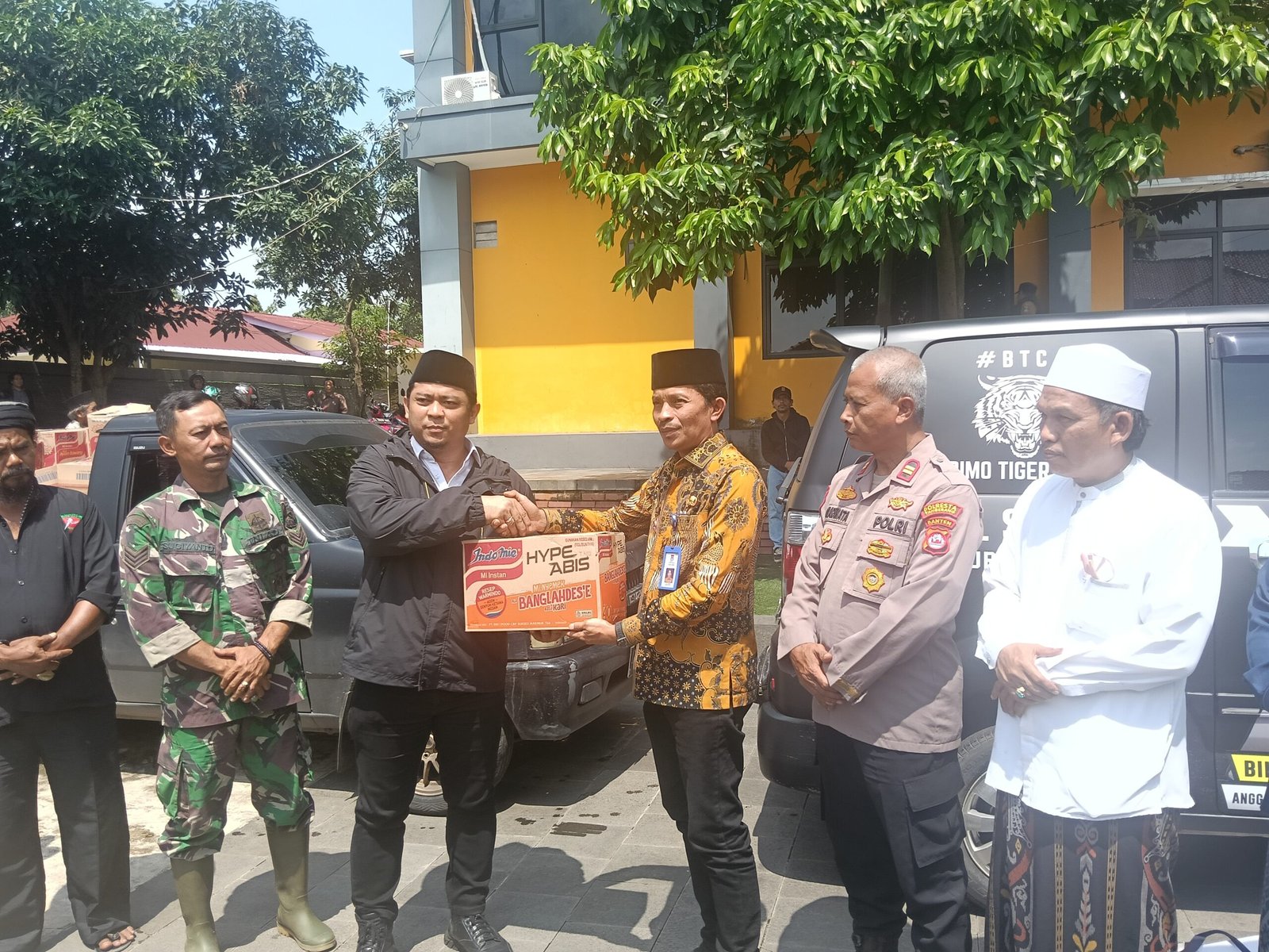 Sebagai bentuk kepedulian terhadap warga terdampak banjir, Fraksi Golkar secara simbolis menyerahkan bantuan kemanusiaan berupa mie instan sebanyak satu mobil pick up penuh yang diserahkan langsung kepada Camat Kresek, Eka Fathussidki.
