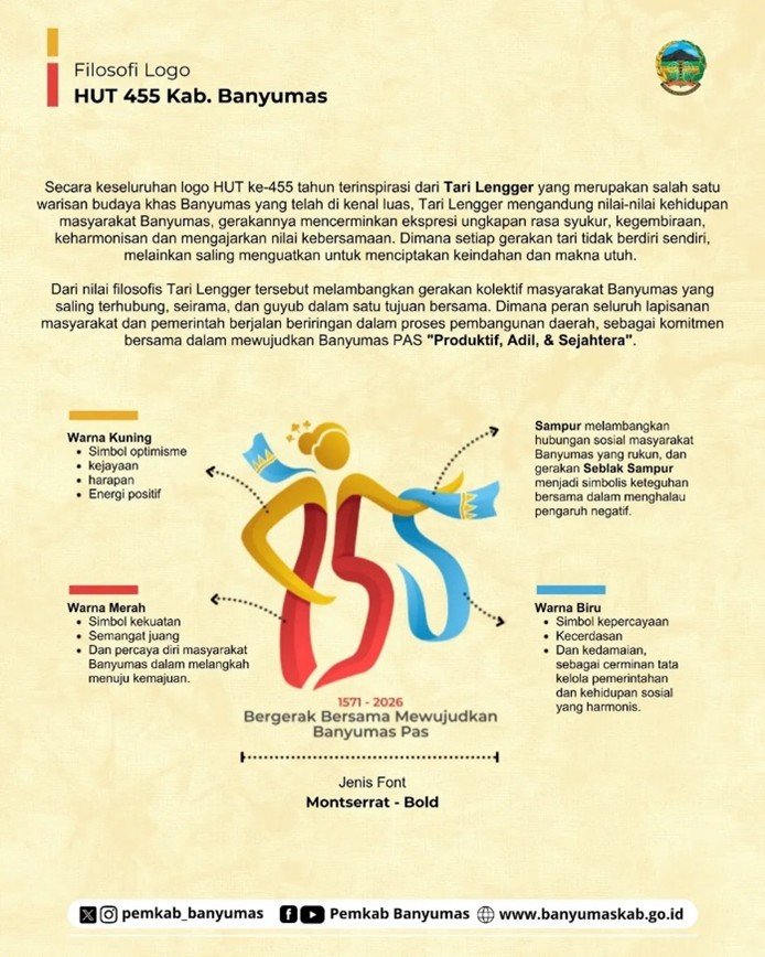 BANYUMAS, ifakta.co- Logo Hari Jadi Banyumas ke-455 Tahun 2026 terinspirasi dari Tari Lengger, salah satu warisan budaya khas Banyumas yang telah dikenal luas.