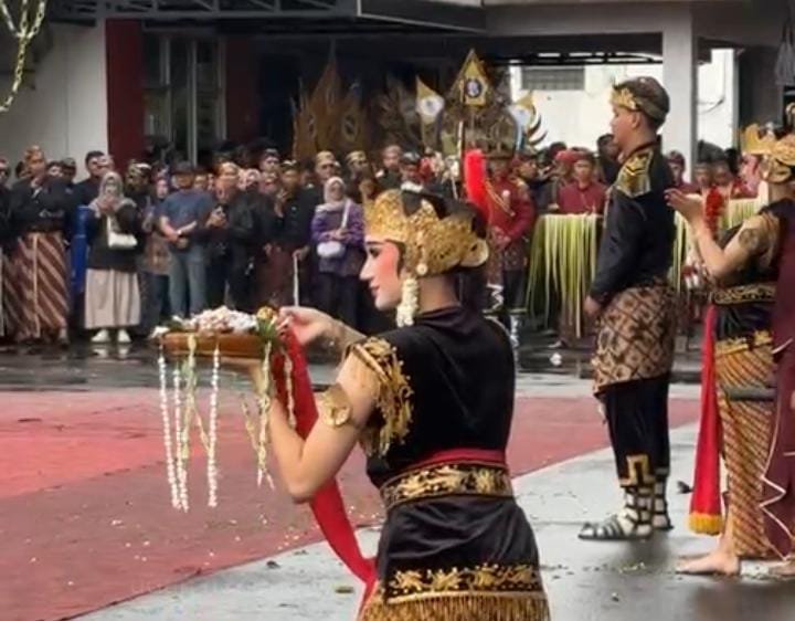 Di belakangnya, para pembawa pusaka berjalan membawa benda-benda bersejarah tersebut dengan penuh kehormatan.
