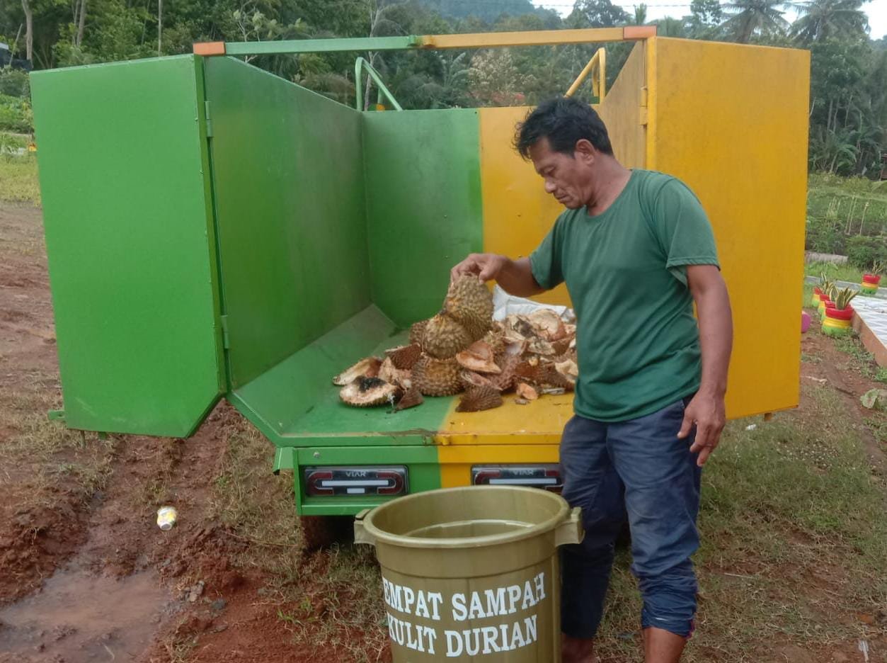 Dengan banyaknya produksi dan penjualan durian tersebut, sampah kulit dan biji yang dihasilkan pun semakin menumpuk.