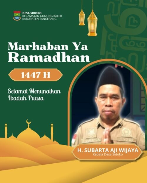 TANGERANG, ifakta.co – Kepala Desa Sidoko, H. Subarta Aji Wijaya, bersama jajaran Pemerintah Desa Sidoko, Kecamatan Gunung Kaler, menyampaikan ucapan Marhaban Ya Ramadhan 1447 H/2026 serta selamat menunaikan ibadah puasa kepada seluruh masyarakat Desa Sidoko.