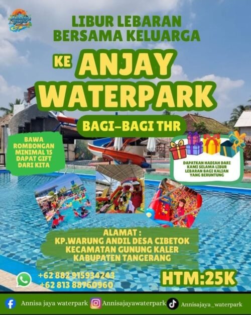 Dalam rangka menyambut Hari Raya Idul Fitri 1447 H/2026, Waterpark Annisa Jaya menghadirkan program spesial dengan membagikan THR serta berbagai hadiah menarik bagi para pengunjung. Program ini menjadi daya tarik tersendiri, khususnya bagi rombongan keluarga maupun komunitas.