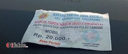 TANGERANG, ifakta.co – Polemik tarif tiket parkir di kawasan wisata Pulo Cangkir, Kecamatan Kronjo, kian menjadi sorotan publik. Karcis parkir senilai Rp20 ribu yang beredar luas di media sosial memicu pertanyaan, lantaran bertuliskan “Karang Taruna Desa Kronjo” namun diduga tidak memiliki dasar hukum yang jelas, seperti Peraturan Desa (Perdes).
