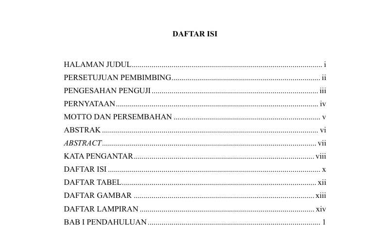 Daftar isi yang rapi membuat dokumen terlihat lebih profesional. Oleh karena itu, hasil kerja menjadi lebih meyakinkan.