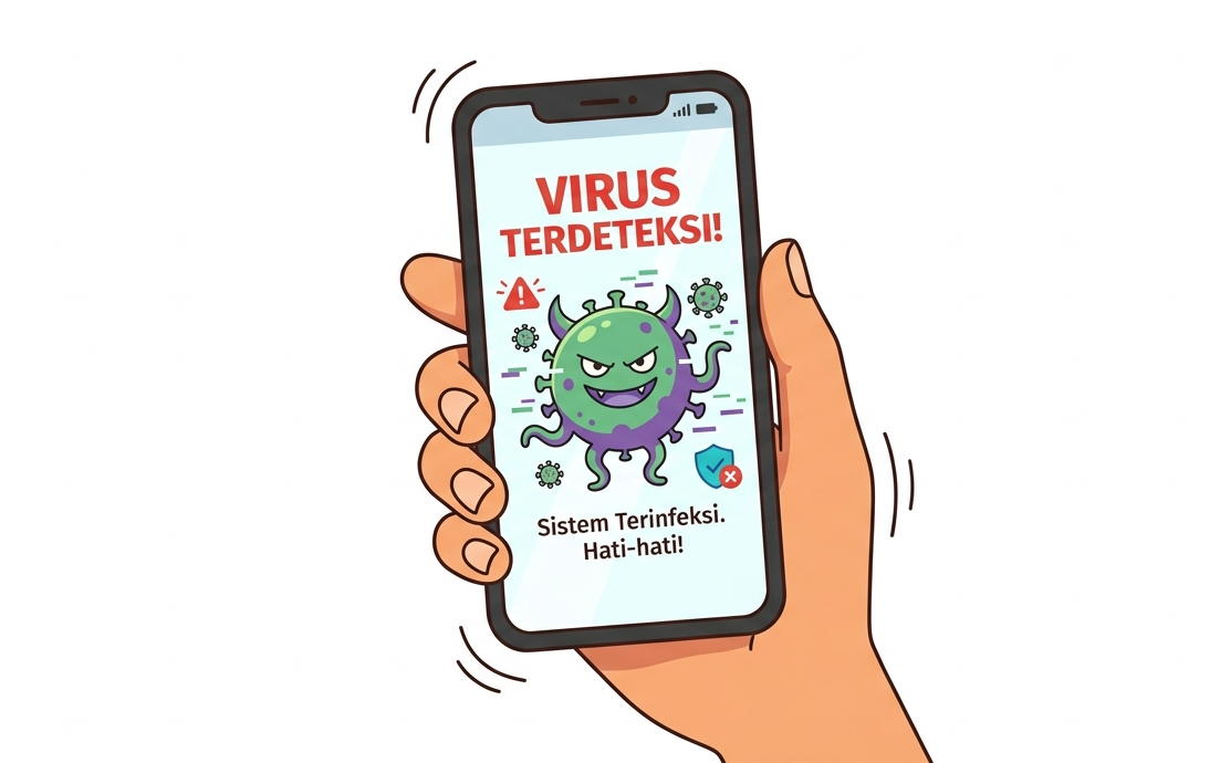 Virus atau malware merupakan program berbahaya yang masuk ke perangkat tanpa izin. Biasanya, malware menyusup melalui aplikasi tidak resmi, tautan mencurigakan, atau file unduhan berbahaya. Akibatnya, sistem menjadi lambat, baterai cepat habis, bahkan data bisa dicuri.
