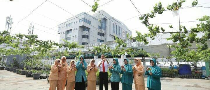 Wali Kota Jakut Bersama Ketua Tim Penggerak PKK Panen Buah Anggur di Area Rooftop Parkir Walikota