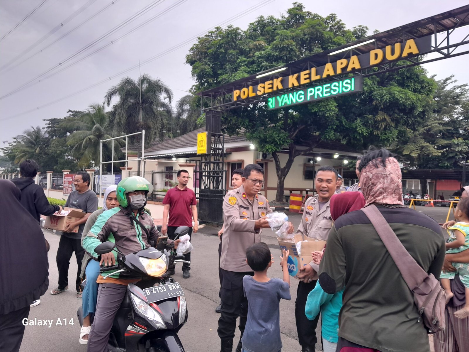 Kapolsek Kelapa Dua Berbagi Takjil Kepengguna Jalan Depan Kantor Polsek Mako Kelapa Dua