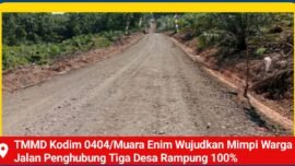 TMMD Kodim 0404/Muara Enim Wujudkan Mimpi Warga Jalan Penghubung Tiga Desa Rampung 100%